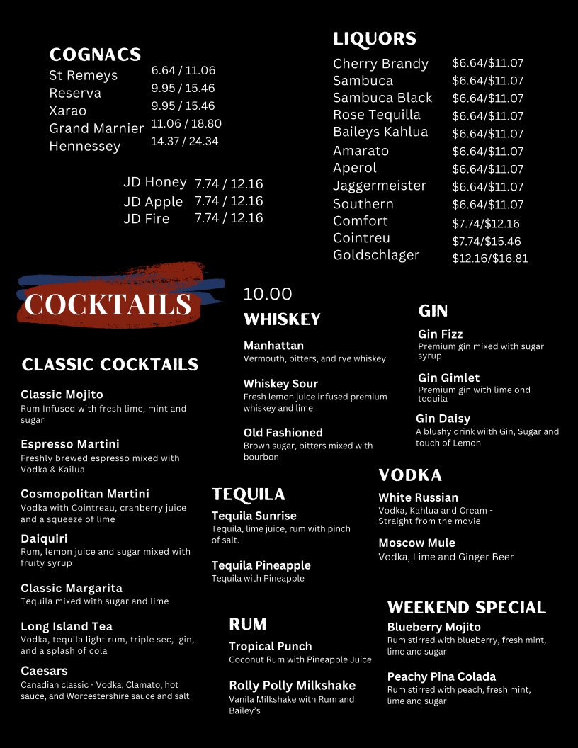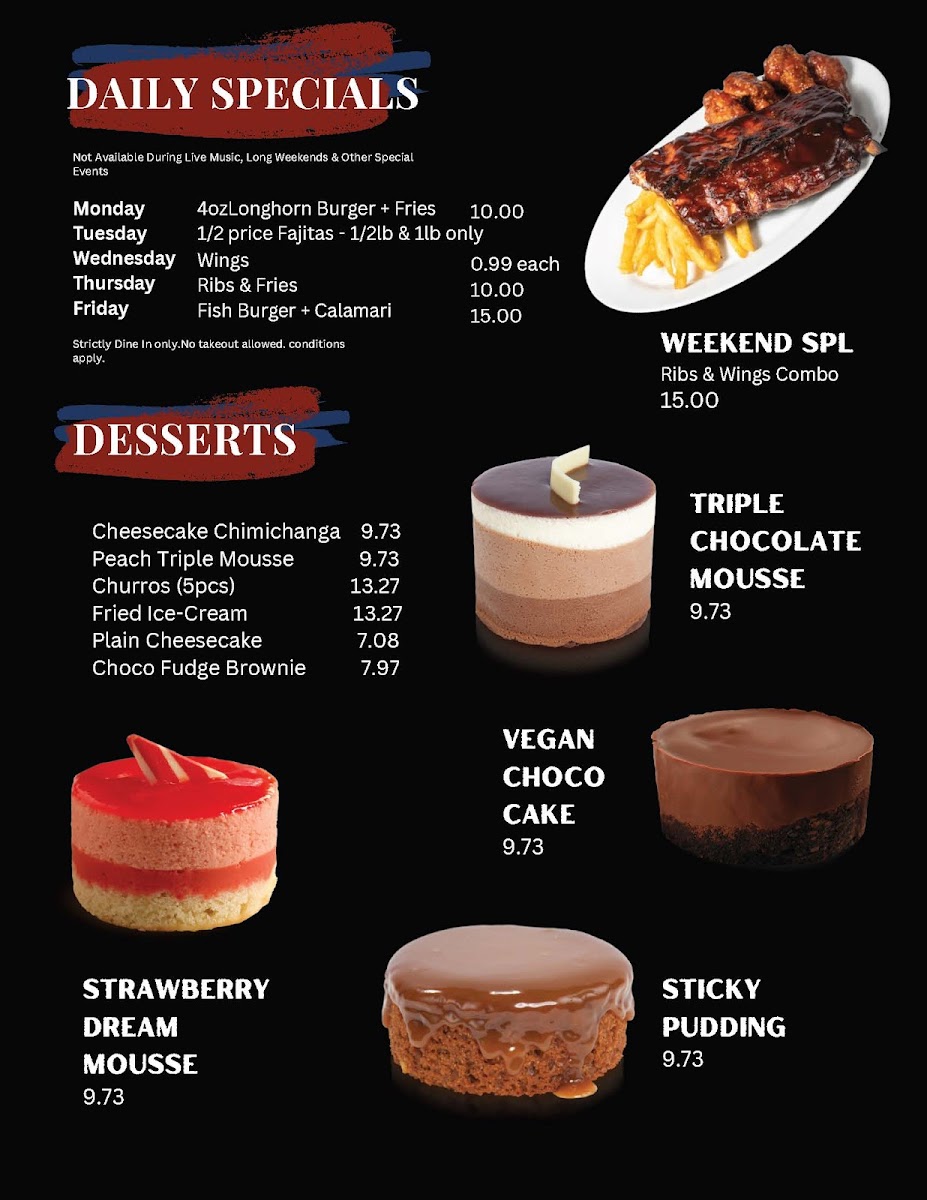 Sides are equally memorable, such as the Poutine (CA$9.00), which elevates the classic Canadian dish to new heights with its mix of crispy fries topped with rich gravy and cheese curds. And let’s not forget dessert—treat yourself with the indulgent Cheesecake Chimichanga at CA$9.73 or the velvety Triple Chocolate Mousse, leaving your sweet tooth completely satisfied.